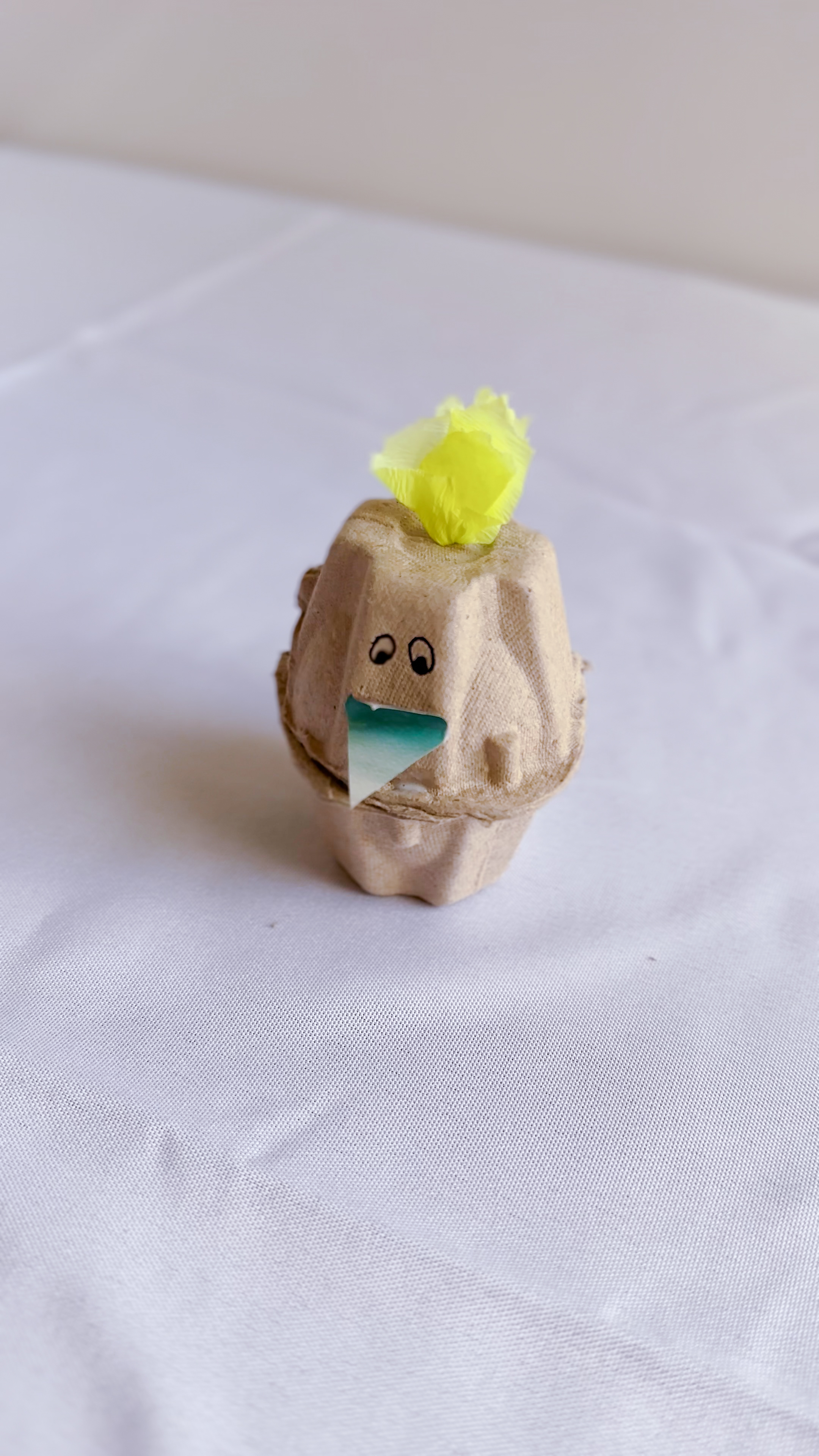 Try your hand at a sustainable Easter craft. For example, make chicks out of egg cartons! First, separate all of the individual egg compartments with scissors. Then, stick the two openings together using glue or a staple. Lastly, attach a beak with glue, draw on your eyes and create a feather at the top by poking a small hole and sticking a piece of tissue paper inside. Place these around your house or in your basket to add festive décor!